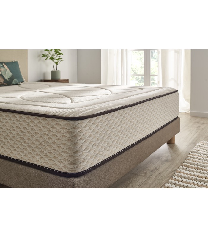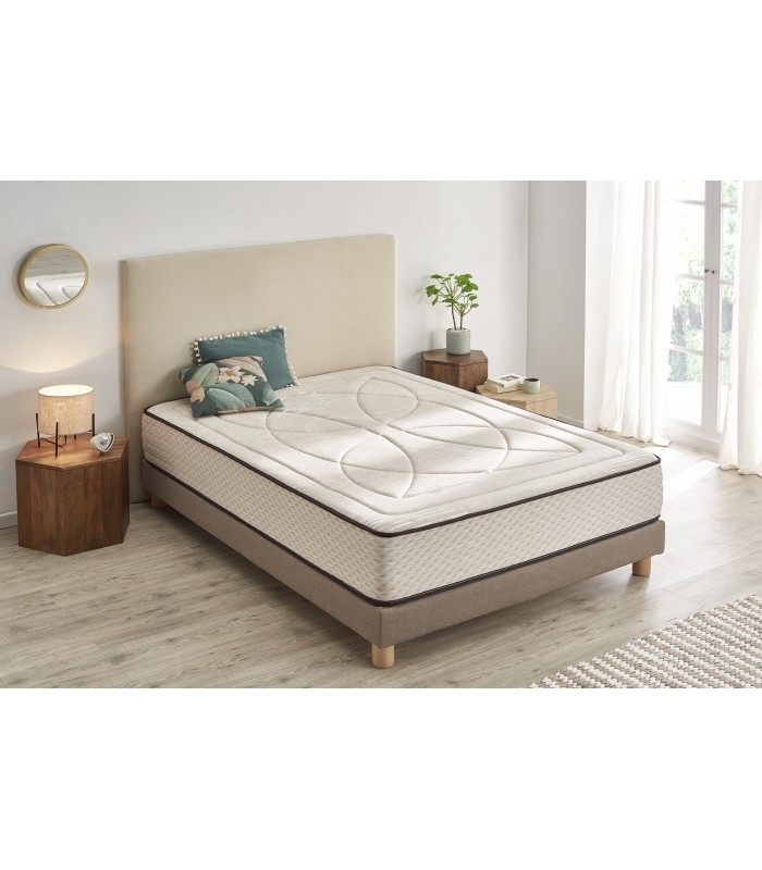 The mattress is manufactured by combining a high density HR core, which ensures the firmness of the mattress, and viscoelastic layers that cushion and provide the so-called cloud effect. In addition, this core guarantees the independence of beds and allows two people to rest on the mattress without affecting the adaptability and firmness of each bed.